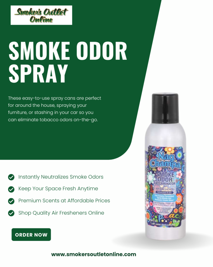 Buy Smoke Odor Spray from Smoker’s Outlet Online to effectively remove stubborn smoke smells from your surroundings. Designed to neutralize odors caused by cigarettes, cigars, and pipe tobacco, this advanced formula targets odor particles and leaves the air clean and refreshed. Perfect for use in living rooms, vehicles, offices, and designated smoking areas, it delivers fast and reliable results. Smoker’s Outlet is a dependable destination for smoke control products, premium tobacco, cigarette tubes, rolling papers, lighters, and essential smoking accessories—all at competitive prices with convenient shipping. For more information or to buy online, visit: https://www.smokersoutletonline.com/accessories/sprays-and-air-fresheners/sprays.html
