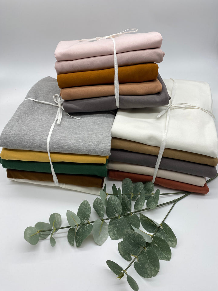 Weiches Material -T-Shirts, Schlafanzüge und Bettwäsche bestehen aus solchen Jersey-Materialien, die ein dehnbares und weiches Gefühl vermitteln. Die Qualität des Materials hängt von der Strickmethode ab, die dem Stoff Elastizität verleiht. Es ist hautfreundlich, dass die Haut in keiner Weise schaden wird.