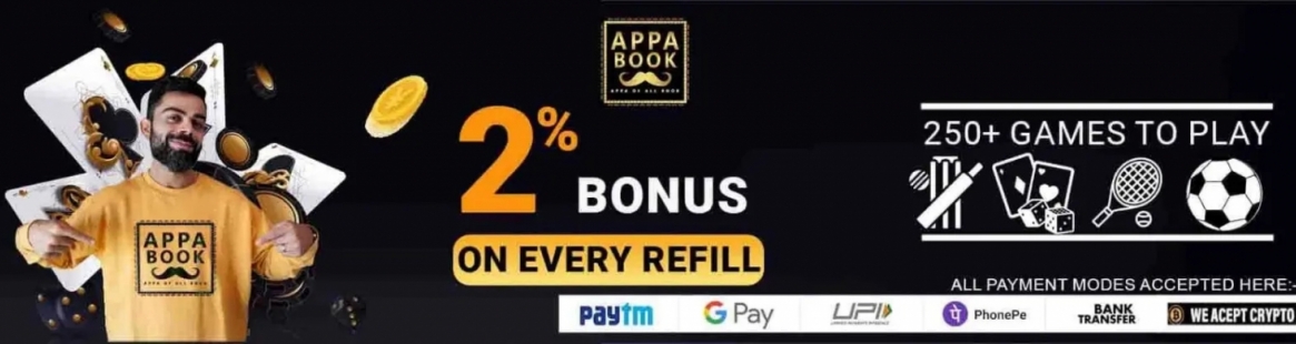 AppaBook is the premier online Betting ID provider that offers unparalleled opportunities for users to earn exciting bonuses and promotions. With our platform, cricket enthusiasts can effortlessly create their Online Betting ID and unlock a fantastic login bonus of 2%. But that's not all! We go beyond login bonuses and offer a multitude of additional promotions and irresistible offers to our valued users. Join AppaBook today and experience the ultimate cricket betting experience with incredible... more AppaBook is the premier online Betting ID provider that offers unparalleled opportunities for users to earn exciting bonuses and promotions. With our platform, cricket enthusiasts can effortlessly create their Online Betting ID and unlock a fantastic login bonus of 2%. But that's not all! We go beyond login bonuses and offer a multitude of additional promotions and irresistible offers to our valued users. Join AppaBook today and experience the ultimate cricket betting experience with incredible rewards at every step. https://appabook.com