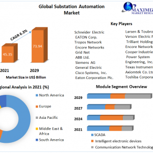 Substation AutomationMarketwas valued USD 45.35 Bn in 2021 and is expected to reach US$ 73.94 Bn by 2029, at CAGR of 6.3% during forecast period of 2022 to 2029.