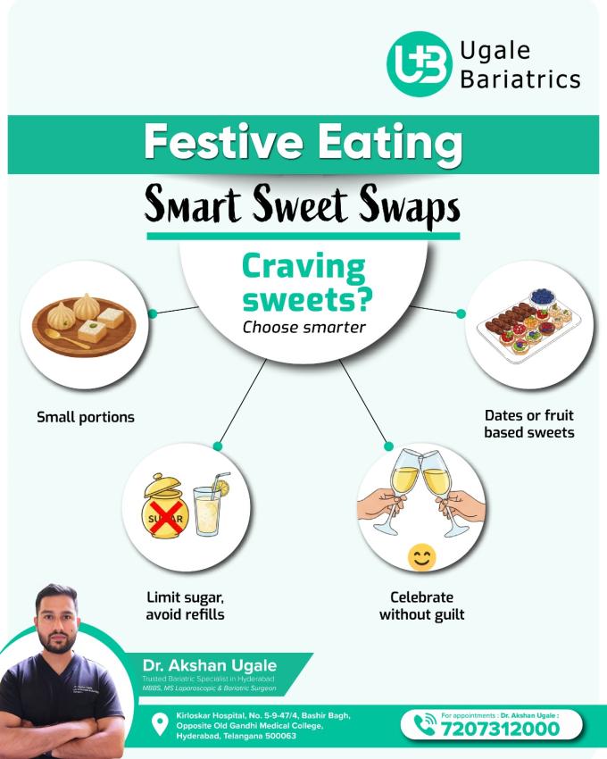 #UgaleBariatrics #BestBariatricCenterInHyderabad #FestiveEating #SmartSweetSwaps #HealthyCelebrations #WeightLossJourney #BariatricCare #MindfulEating #HyderabadHealthcare